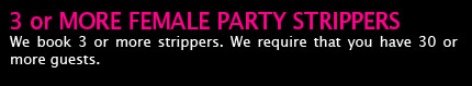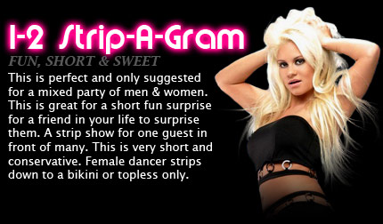 COSTUME CHOICES FOR FEMALE DANCERSPolice Girl, School Girl, Fire Girls, Cheerleaders, Girls like Bunnies, Cow Girls, Construction Girls, Business Suit, Bikinis, Lingerie, Army Girl, Sexy Stripper Gear, Racer Girl, The Bride, Nurse, Leather, Lace, Farm Girl, Party Guest, Lady Gangster, Teacher, Sports theme of your Favorite Team.COSTUME CHOICES FOR MALE DANCERSPolice Man, Fireman, Zoot Suit, Construction Worker, Pizza Delivery Guy, Army Guy/ Military, Leather/Biker, Cowboy, Navel Officer, Zorro, GQ Suit, Party Guest, Package Delivery Guy, Business Suit, Mechanic, Doctor, Top Gun, Matrix, Tuxedo.HOSTESSSING & EVENTS SHOWS - MALE & FEAMALE DANCERSWe do hostessing and event shows. You may hire both our male and female dancers for this. Modeling, Product sales., Golf tournment, Gage dancing, ticket sales, Bartending, Card dealing, Serving drinks, Car, boat, bike shows, sporting events.PARTY CITY GENERAL INFORMTION18 YEARS OF AGE ALL GUESTS: Just a friendly reminder. That all guests attending are to be 18 and years of age or older. This is a state law. The person who arranges the party is to inforce this as our dancers will also. CANCELATION FEE: We ask that if have cancel your show. That you cancel 5 days prior to the event. If you do not cancel within your time frame. We will charge a 50% cancelation fee. This is due to prebooking as we book 2 to 3 weeks in advance. To cancel. You will need to call our office. DEPOSIT FOR YOUR PARTY: When booking with us we will go over our deposit method. PARTY CONDUCT DISCLAIMER: All customers who book with us are to maintain a safe environment at all times for our dancers. At any time that the dancers feel harrased or threatened. They have the right to leave without any money for fees returned. BARS / RESTURANTS / HOTELS / MOTELS: To book a male or female exotic dancer with our agency in anyone of these locations. All customers are to ask the management if exotic entertainment is allowed, and a private room away from public viewing is a requirement. PRE-BOOKING AHEAD & LASTMINUTE SHOWS: It is always best to book ahead. But our agency also books same day, hours and minutes before. Anderson Strippers, Arbuckle Strippers, Artois Strippers, Auburn Strippers, Biggs Strippers, Chester Strippers, Chico Strippers, Colusa Strippers, Davis Strippers, Dunnigan Strippers, Forest Ranch Strippers, Grass Valley Strippers, Gridley Strippers, Hamilton City Strippers, Knights Landing Strippers, Live Oak Strippers, Marysville Strippers, Mount Shasta Strippers, Nevada City Strippers, Olivehurst Strippers, Plumas Lake Strippers, Orland Strippers, Oroville Strippers, Paradise Strippers, Placerville Strippers, Red Bluff Strippers, Redding Strippers, Shasta Strippers, Shingle Springs Strippers, South Lake Tahoe Strippers, Truckee Strippers, Willows Strippers, Williams Strippers, Winters Strippers, Woodland Strippers, Yreka Strippers, Yuba City Strippers HIRING DANCERS NOW: We are always hiring dancers. Must be over 18 years of age. Call today to get information with being a sub contractor with our agency CALL THE NUMBER BELOW TODAY AND BOOK |
